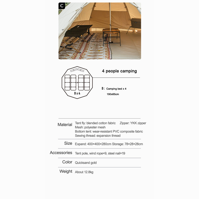 ابعاد در حالت باز شده : 280 * 400 * 400 سانتیمتر