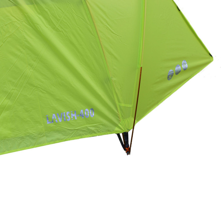 جنس پوش بیرونی : پلی استر 210T از نوع Ripstop ضد آب PU4000 جنس لایه داخلی : پلی استر 190T از نوع Ripstop. جنس و نوع کف چادر : وانی شکل و پلی استر 210 ضد آب PU4000. دارای فضای آشپزخانه یا انباری در دو طرف و جلوی درب های چادر 100 و 50 سانتی متر.