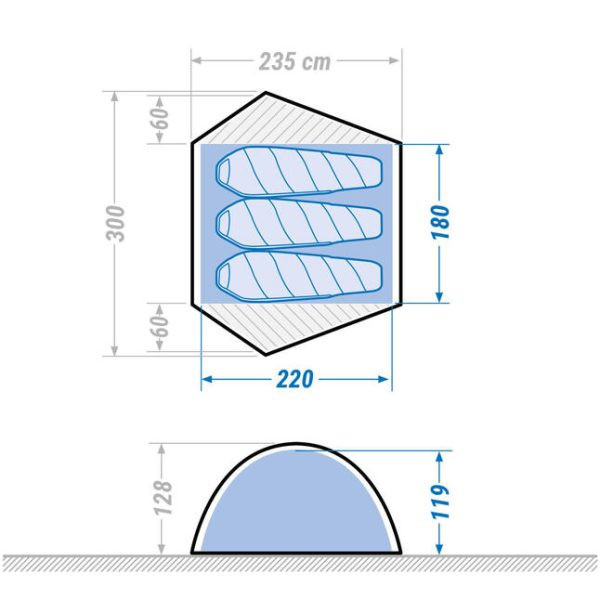 سایر توضیحات: حداکثر عرض کیسه خواب برای هر نفر در این چادر 60 سانتیمتر