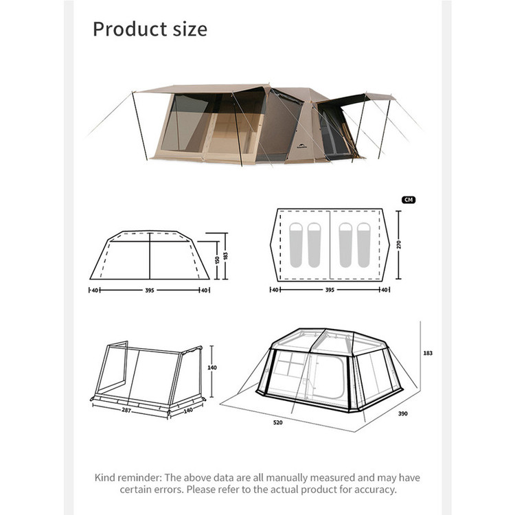 ابعاد در حالت باز شده : 395 * 270 * 183 سانتیمتر