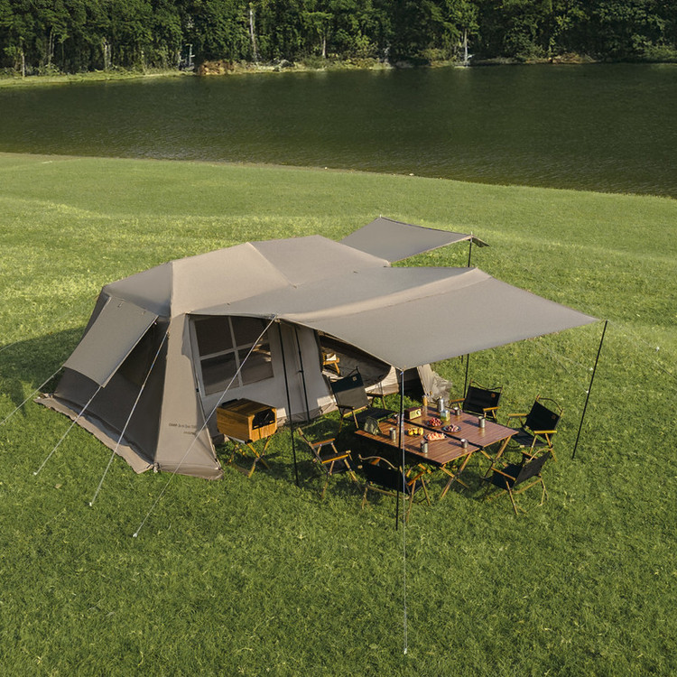 سایر توضیحات : پوشش تیتانیوم وینیل برای مقاومت بسیار بالا در برابر نفوذ آب و نور خورشید-حیاط خلوت با پشه بند بزرگ-چادر به راحتی نصب میشود-