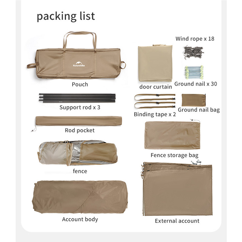 سایر توضیحات : پوشش تیتانیوم وینیل برای مقاومت بسیار بالا در برابر نفوذ آب و نور خورشید-حیاط خلوت با پشه بند بزرگ-چادر به راحتی نصب میشود-