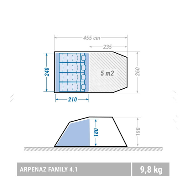 کچوا آرپناز چادر کمپینگ 4 نفره | کمپینگ خانوادگی 4 نفره که یک چادر با یک اتاق خواب و یک اتاق نشیمن مرتفع می خواهند.