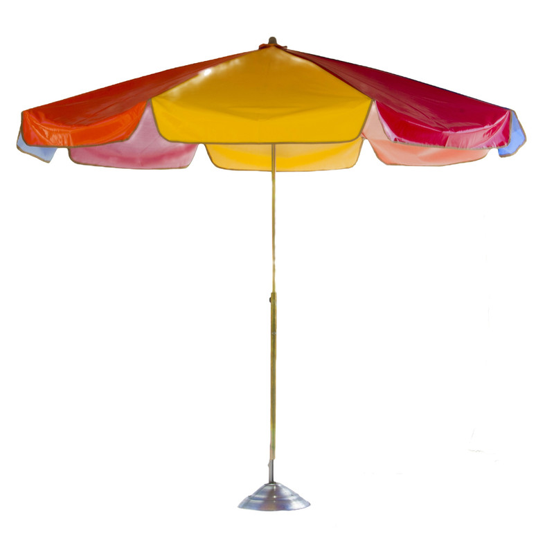اگر قصد دارید اوقات فراغتتان را در بعدازظهرهای تابستانی در حیاط یا تراس خانه سپری کنید یا بهتازگی رستوران یا کافیشاپی افتتاح کردهاید که امکان سرو غذا و نوشیدنی در فضای باز را دارد، به یک یا چند سایهبان نیاز پیدا خواهید کرد. با تهیهی سایهبان میتوانید برای یک تا چند ساعت از تابش نور خورشید در امان باشید و در فضای باز یک لیوان چای یا غذایی دلچسب نوشجان کنید. پارچهی استفادهشده برای این سایهبان حالت نایلونی دارد تا حتی هنگام بارش باران نیز خیس نشوید اما در بارش طولانی مدت ضدآب نیست. طول یا قطر کلی پارچهی این محصول برابر با 200 سانتیمتر یا دو متر است که فضای نسبتا خوبی را پوشش میدهد. برای بدنهی اصلی یا پایهی سایهبان از لوله آبکاری شده آهنی سایز 22 استفاده شده است تا استحکام و مقاومت لازم را دارا باشد و گذشت زمان باعث شکستن و آسیب دیدنش نشود. قسمت انتهایی میلهی پایه به قطعهای آهنی متصل میشود که حالت دایرهایشکل دارد. داخل این قسمت آهنی را میتوان با سیمان پر کرد تا سنگین تر شود. با سنگینکردن این پایهی آهنی، سایهبان در اثر وزش ملایم باد، واژگون نخواهد شد.