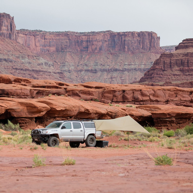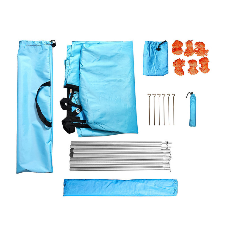 سایبان سفری با حجم و وزن کم، گزینه مناسب برای کمپینگ و سفر است تا شما را در مقابل اشعه خورشید و بارش بارانهای ناگهانی محافظت نماید. این سایبان به اشکال مختلف در طبیعت قابل برپایی است و همچنین از آن میتوان در کنار خودرو نیز برای لذت بردن از سفر و تفریح استفاده نمود. در شرایط خاص از این سایبان میتوان به عنوان چادر اضطراری نیز بهره گرفت. پارچه سایبان از جنس پلی استر با خاصیت آبگریزی و مقاوم در برابر اشعه فرابنفش است تا از شما در مقابل تابش خورشید محافظت نماید. ستون های سایبان از هشت لوله 50 سانتی متری تشکیل شده که قابلیت نصب در ارتفاعهای گوناگون را فراهم میکند. ضمنا با تهیه یک جفت ستون اضافه، میتوان اشکال سایبان با چهار ستون را جهت افزایش سایه بیشتر برپا نمود. این سایبان با وزن 2.2 کیلوگرم به راحتی قابل حمل توسط طبیعتگردان و گردشگرانی است که با اتومبیل، دوچرخه، موتورسیکلت و پیاده سفر میکنند تا در مسیر خود یا در دل طبیعت از این پوشش برای استراحت و در امان ماندن از نور خورشید، باران و حتی برف استفاده نمایند.