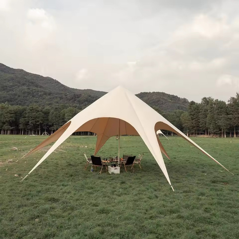 ساختار این سایبان بسیار خاص و ستاره ای شکل بوده که در عرض کمتر از 10 دقیقه به راحتی نصب و جمع می شود و فضایی بزرگ را به اندازه 10 متر مربع تحت پوشش قرار میدهد.این سایهبان را میتوان برای محافظت بیشتر بر روی چادر نیز برپا کرد و فضای اطراف چادر را برای بازی، پخت و پز و استراحت مهیا نمود. رویه این سایه بان مسافرتی، از جنس پارچه آکسفورد 850D با روکش PU5000 تهیه شده که به راحتی پاره نمیشود و همچنین دارای استاندارد UPF50+ میباشد که از تابش اشعههای UV آفتاب جلوگیری میکند. پارچه آکسفورد به خودی خود یک متریال ضد آب است، اما برای بیشتر کردن مقاومت سایه بان به آب، آن را با پلی اورتان (PU) روکش دادهاند.بر روی لایه خارجی سایه بان متریال ضد ماورای بنفش به کار رفته تا کنترل بهتری بر روی نور خورشید داشته باشد.