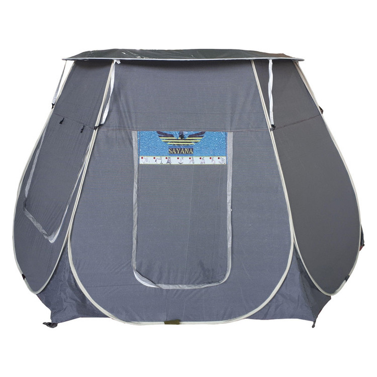 مساحت کف 12 متر مربع ارتفاع 210 سانتی متر پارچه شطرنجی کف ضخیم تفلون ضدآب دارای دو پنجره بزرگ با پشه بند زیبدار