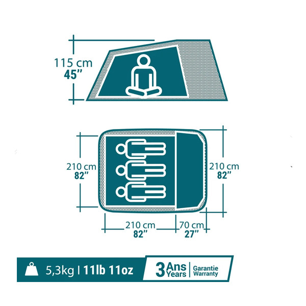 چادر مسافرتی ضد آب 3 نفره کچوا آرپناز 3 ایکس ال تازه و مشکی | آیا شما یک کمپینگ گاه به گاه هستید؟ طراحان ما این چادر سه نفره ساده و آسان را برای محافظت از شما در برابر عوامل ایجاد کرده اند.